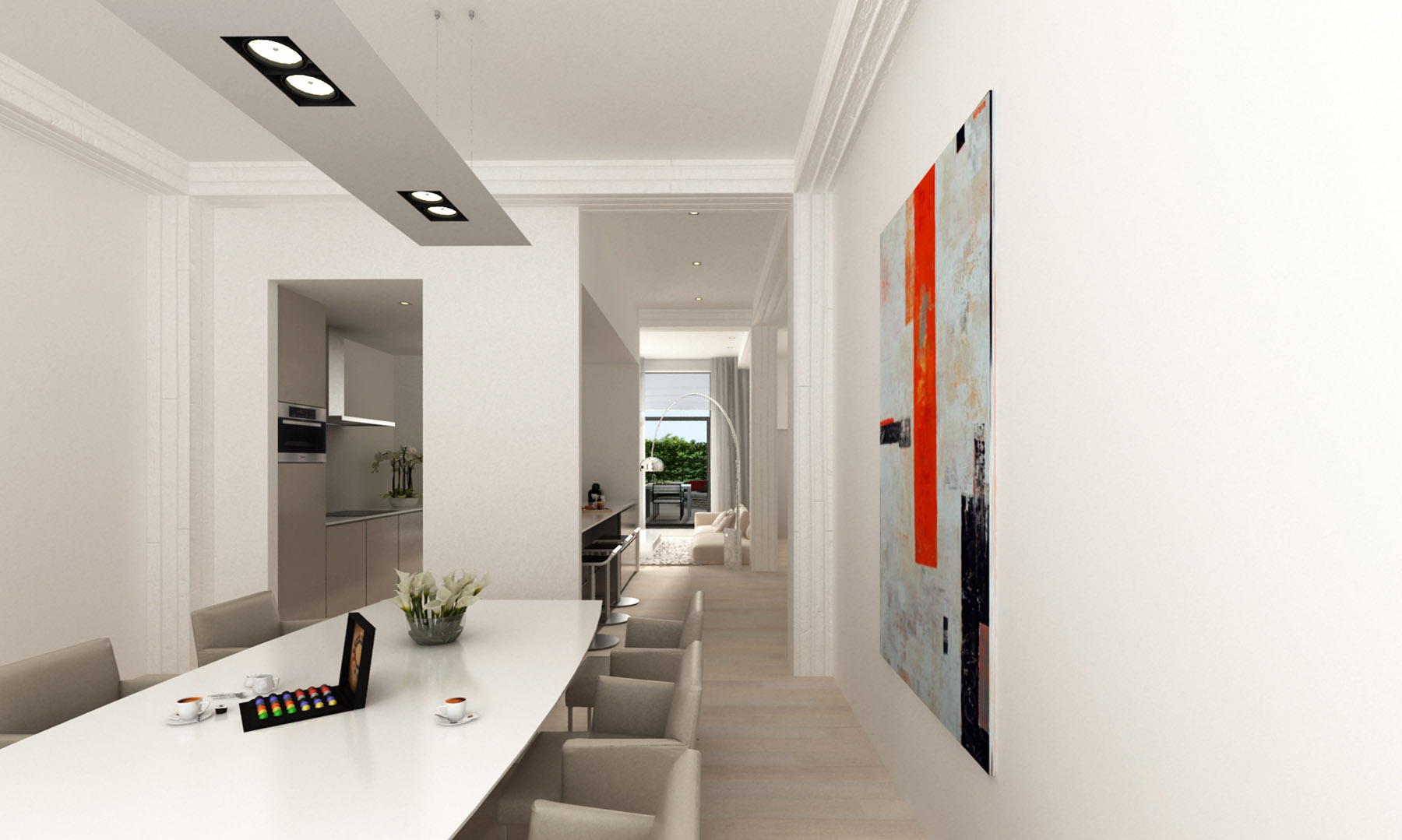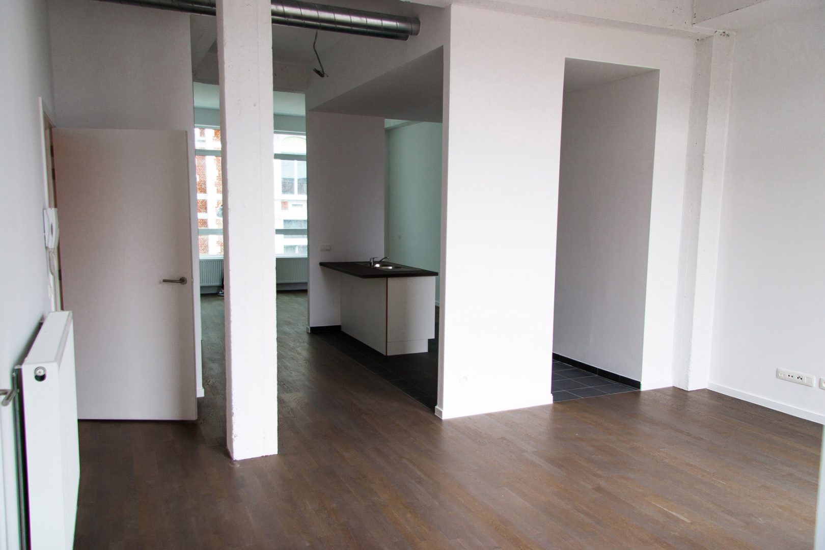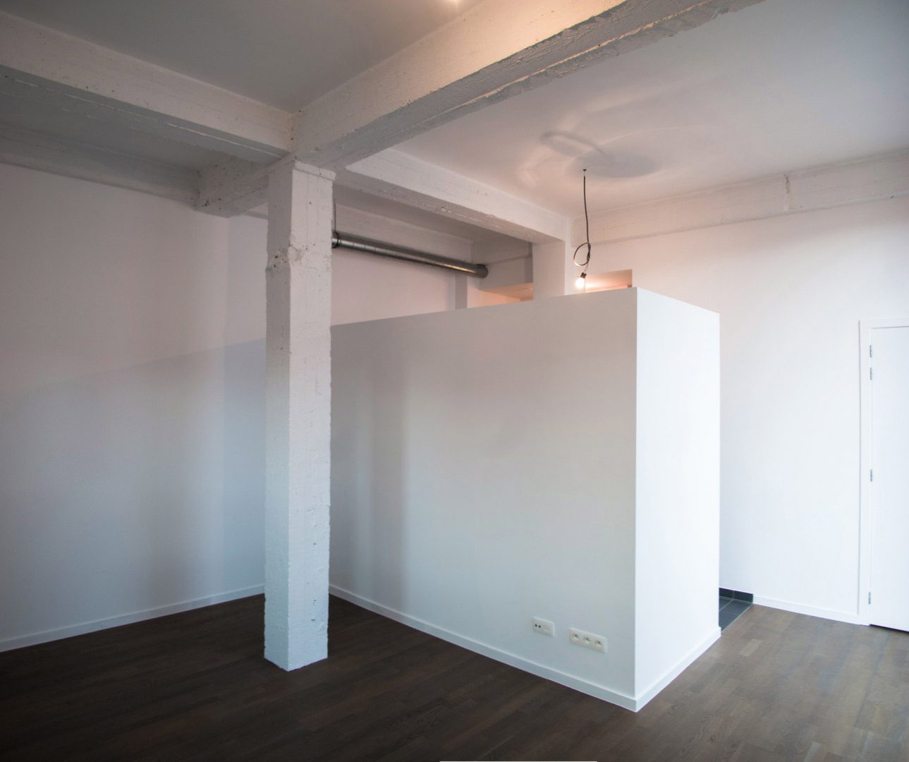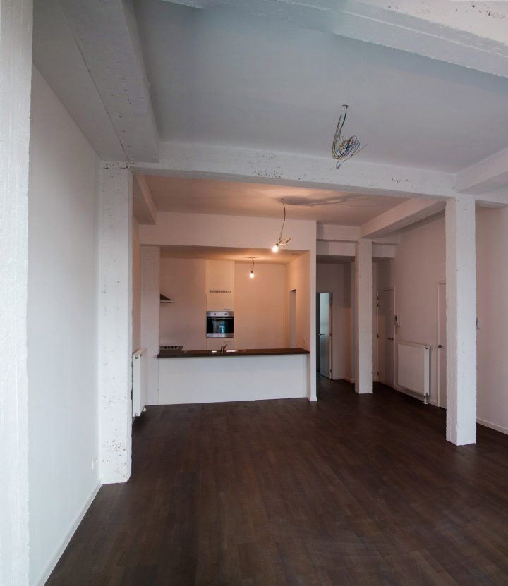 Sur cet ancien site industriel, les bureaux existants ont été démolis dans leur entièreté à l’exception de leur structure en béton brut. Ces nouveaux espaces ont permis de créer deux fonctions commerciales au rez-de-chaussée et six lofts aux niveaux supérieurs. Pour des raisons acoustiques, les sols ont été isolés et les plafonds suspendus. Les colonnes non traitées, quant à elles, ont gardé leur caractère brut et industriel. A l’arrière, la démolition des anciens entrepôts a laissé place à la construction de douze appartements supplémentaires. Le choix des matériaux et la conception du plan mûrement réfléchi mettent en valeur la force du projet.